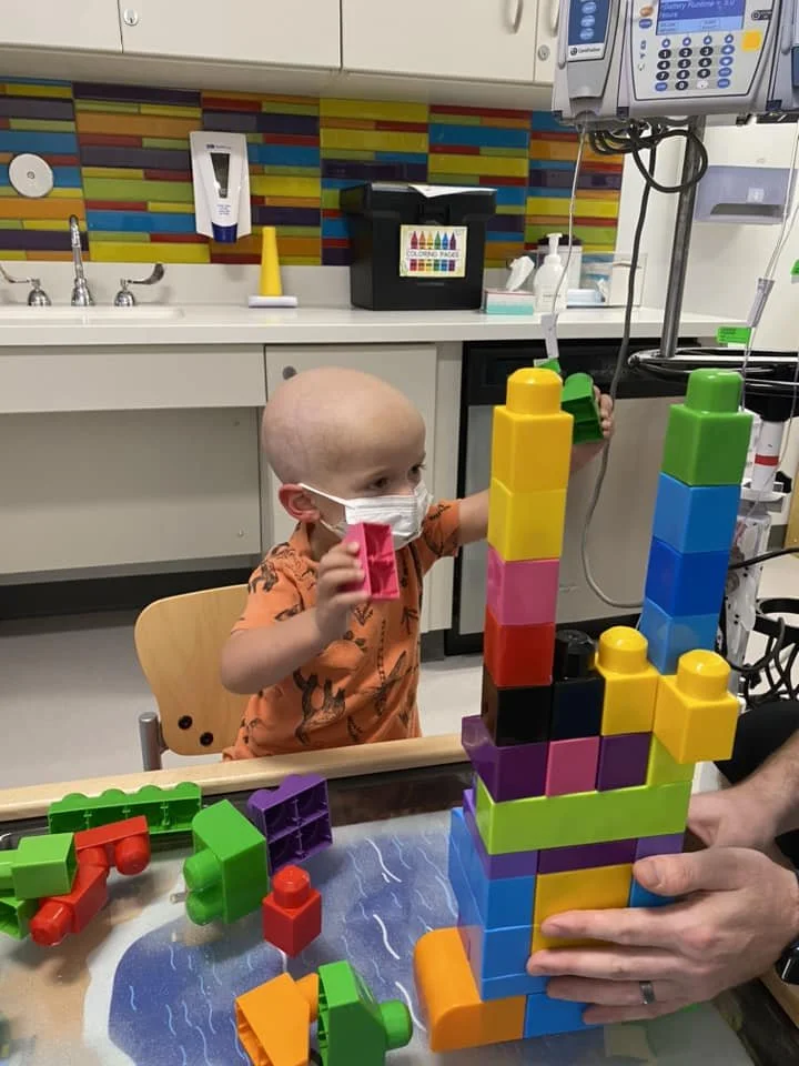 Hudson had a busy day! We had to wake him early for his MRI under sedation, and he wasn’t too happy about it, nor was he happy after waking from sedation (can’t blame him really - poor kid wanted to sleep!). After some breakfast and play time, he had an EEG. He’s been taking anti seizure medication since the day his tumor was found, but he may get to come off the med if his EEG looks good (still awaiting results and follow up with neuro). After lunch, he decided he no longer wanted to sleep, so he ended up going without a nap today. 🫠 But we had lots of good play time this afternoon! This week he’s living on cheez its, easy mac, and yogurt pouches. It seems each week he picks just a couple of things to eat and that’s it! We’re thankful he’s got at least some appetite back! 🙌🏻